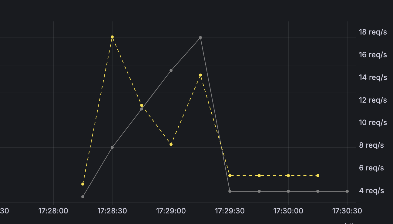 이론상 인덱스를 적용하면 RPS(초당 처리 요청 수)가 확 올라가야 한다고 배웠는데 그래프상에서 인덱스 적용 후 RPS는 유의미하게 증가하지 않았다.